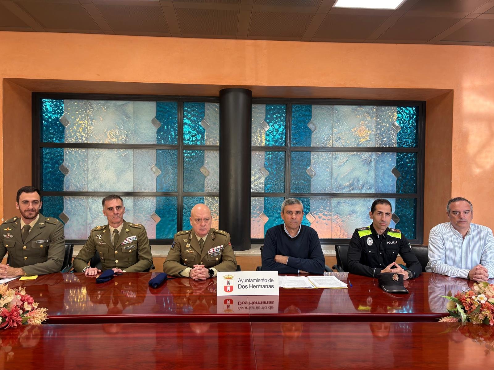 El Teniente de Alcalde Delegado de Movilidad del Ayuntamiento de Dos Hermanas, Antonio Morán Sánchez, y el Teniente Coronel Jefe del Bhelma IV (El Copero) y máximo responsable de la unidad de helicópteros en Dos Hermanas, Manuel Pérez Venegas, han sido hoy los encargados de presidir en el Ayuntamiento el acto de presentación de los actos conmemorativos previstos con motivo del 50 aniversario de la formación militar.
